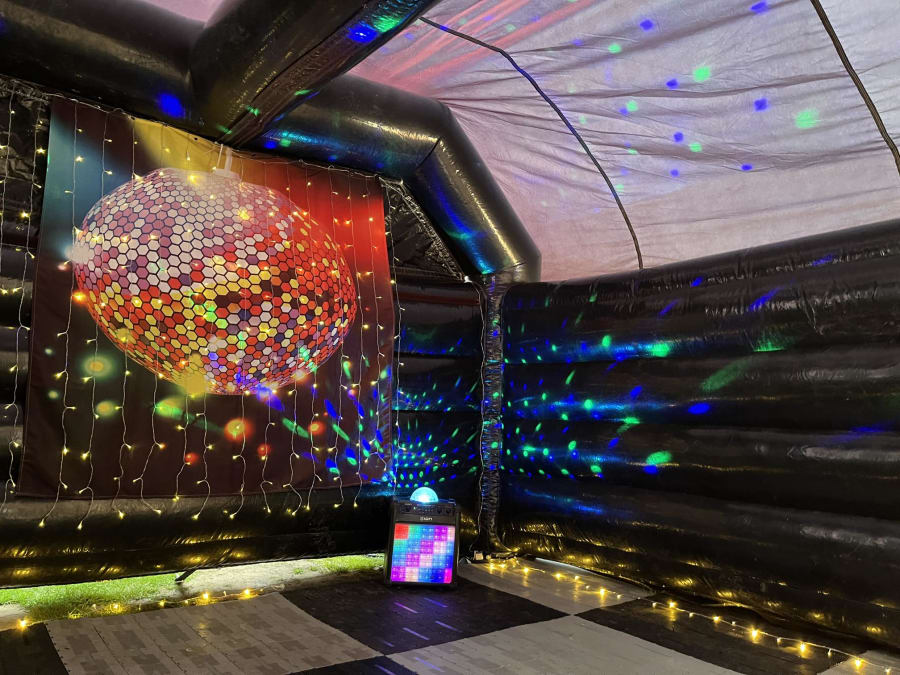 Inflatable Night Club 15ft x 15ft and Large Bluetooth Speaker with Disco Lights for hire in Buckinghamshire, Berkshire, Middlesex and Oxfordshire.
