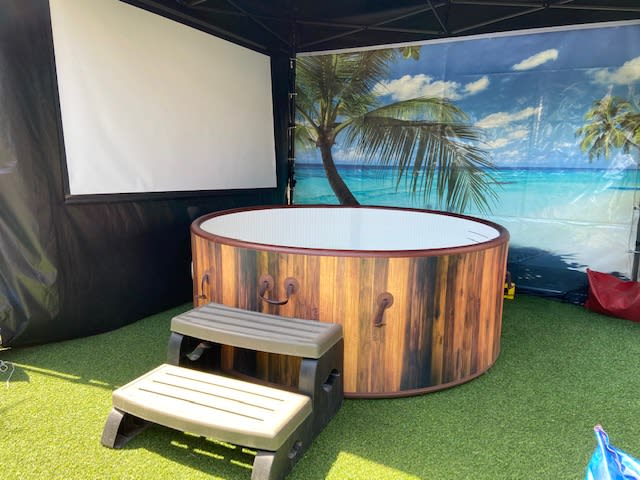 Hot Tub Cinema (STANDARD) with 3M x 3M Gazebo for hire in Buckinghamshire, Berkshire, Middlesex, Oxfordshire.