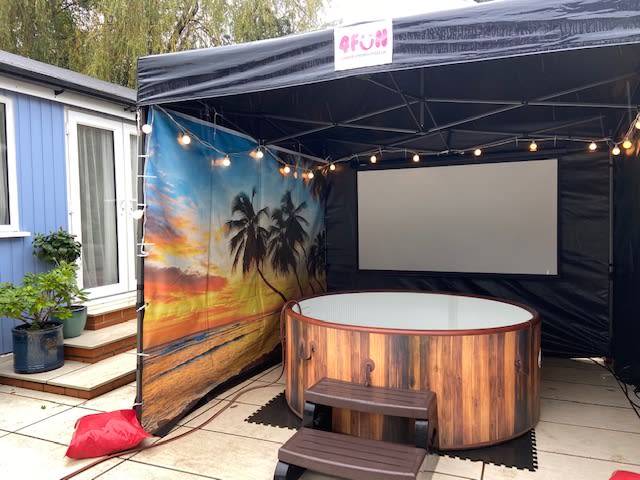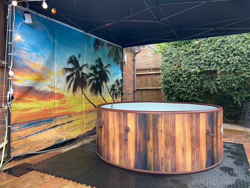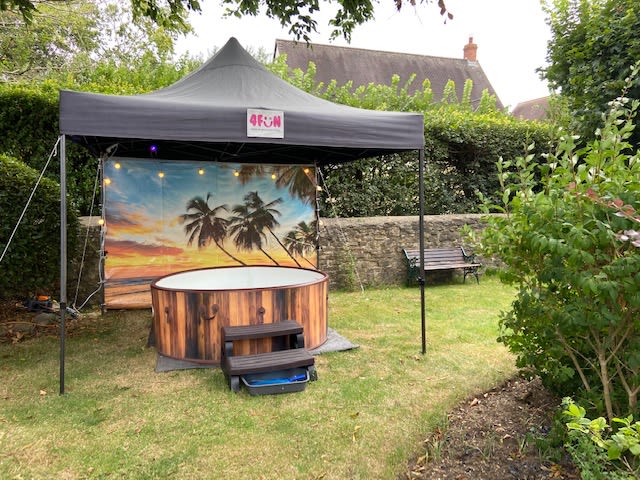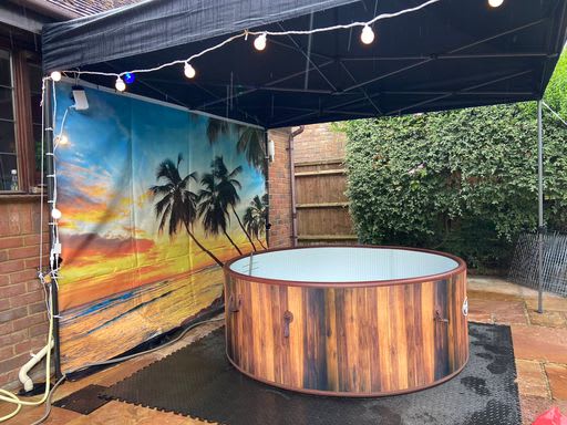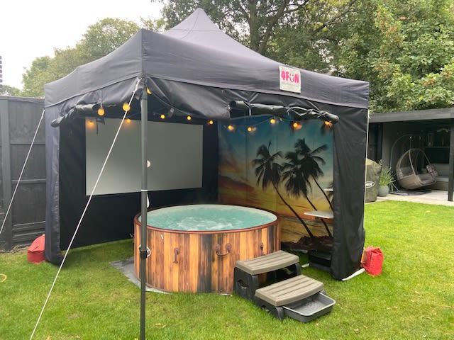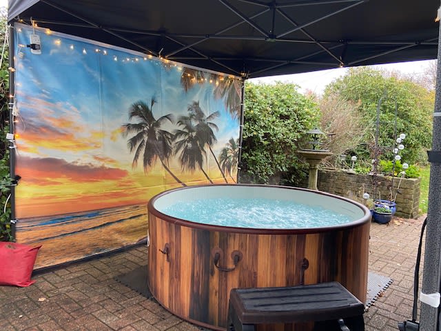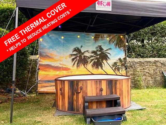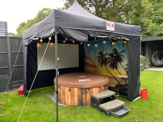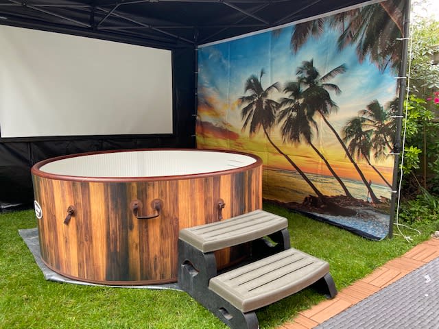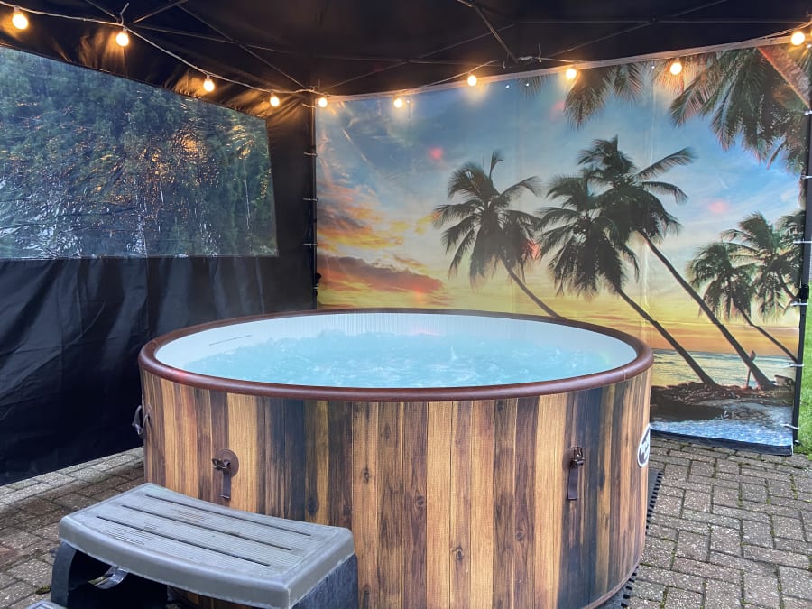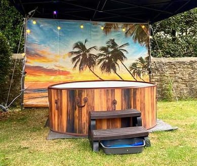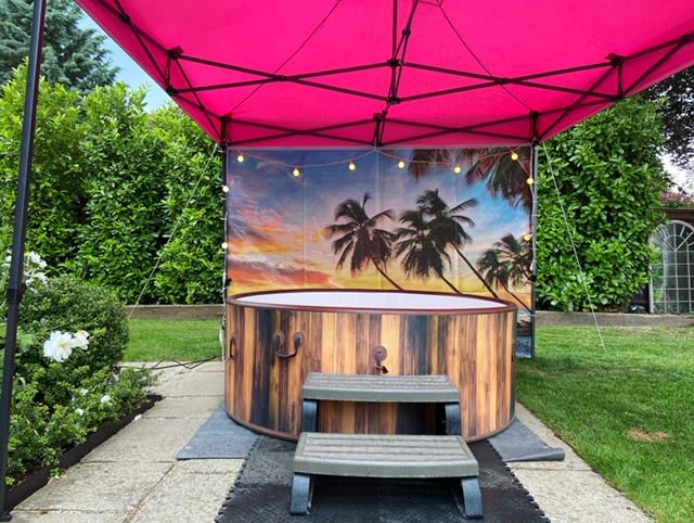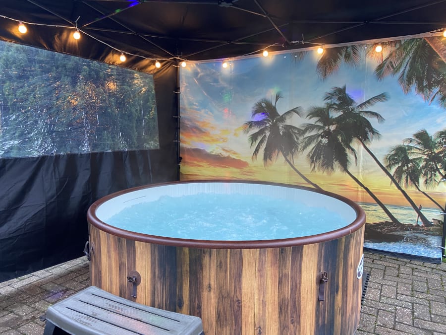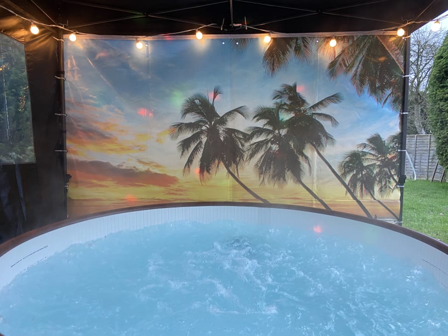 Tropical Beach Sunset Hot Tub and Gazebo Package for hire in Buckinghamshire, Berkshire, Middlesex, Oxfordshire.