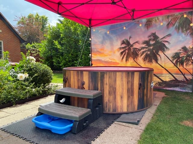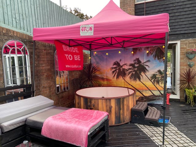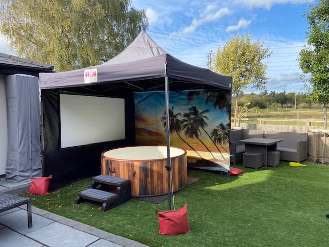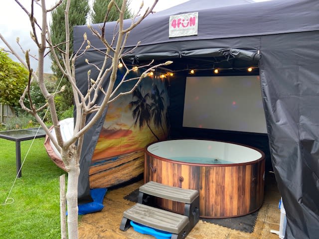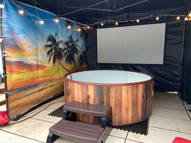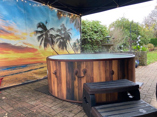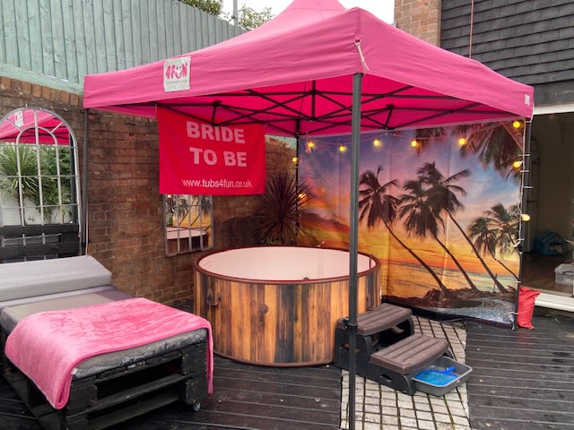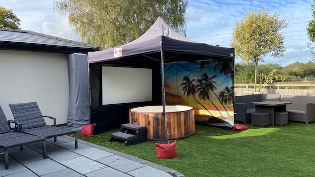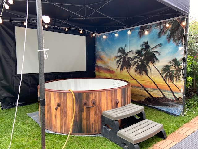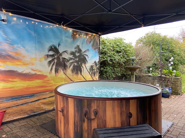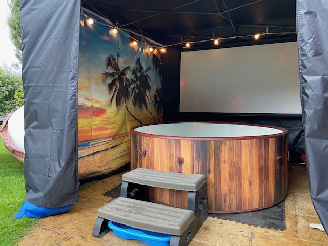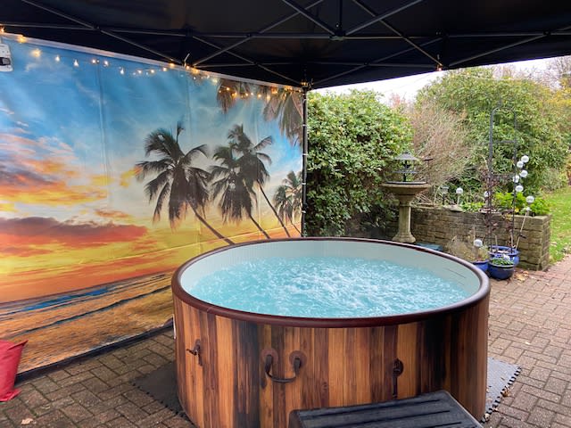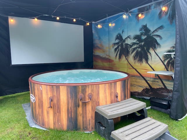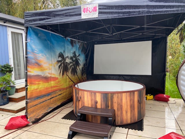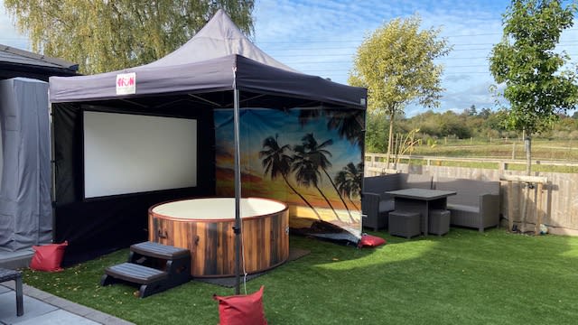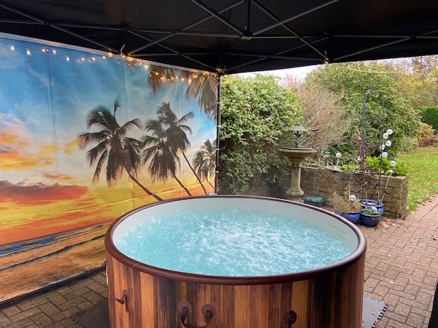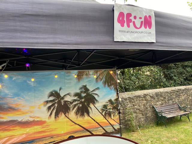 Tropical Beach Sunset Hot Tub and Gazebo Package for hire in Buckinghamshire, Berkshire, Middlesex, Oxfordshire.